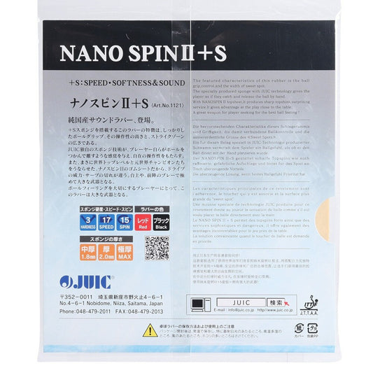 ナノスピン2+S 1121-RED 初心者〜中級者 【JUIC-卓球ラバー】