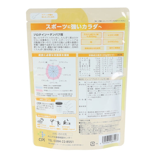 プロテイン ALLUPジュニアプロテイン レモン 140g GWM52TK004 タンパク質 ビタミン EAA 栄養補給 子供 ジュニア