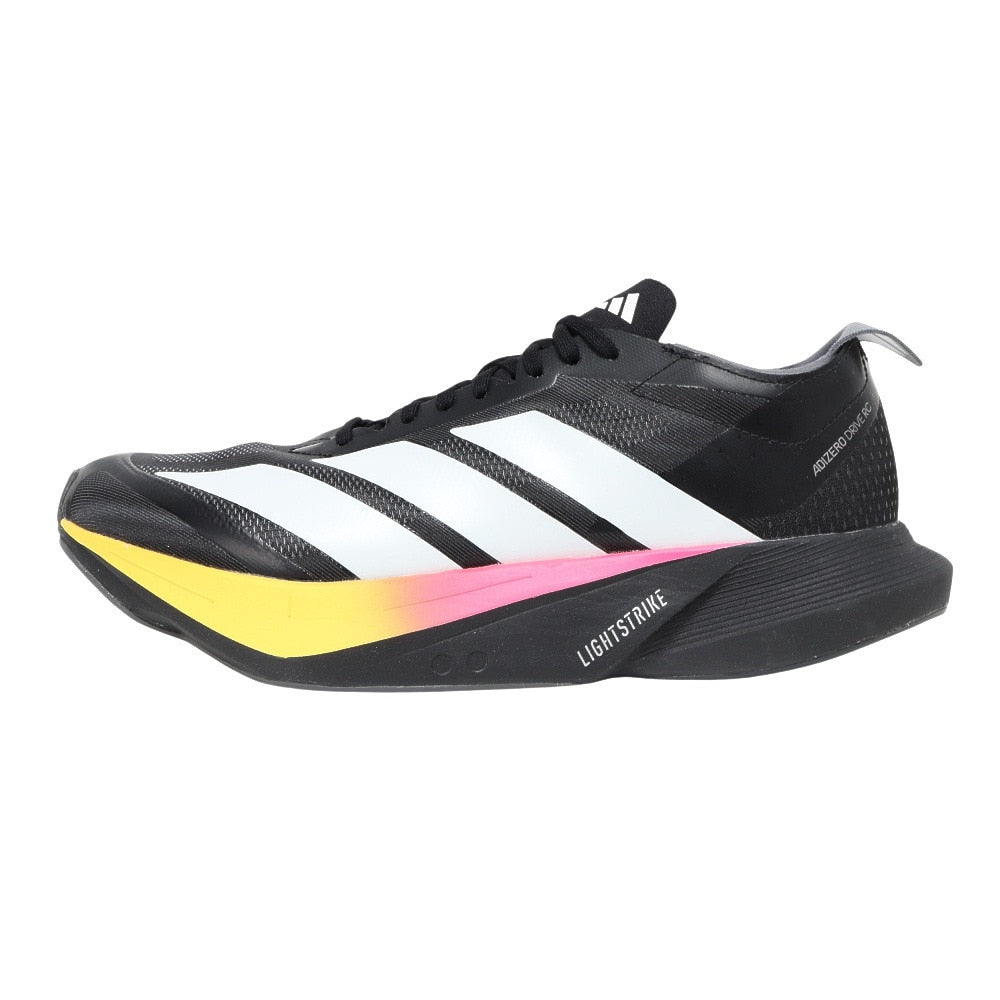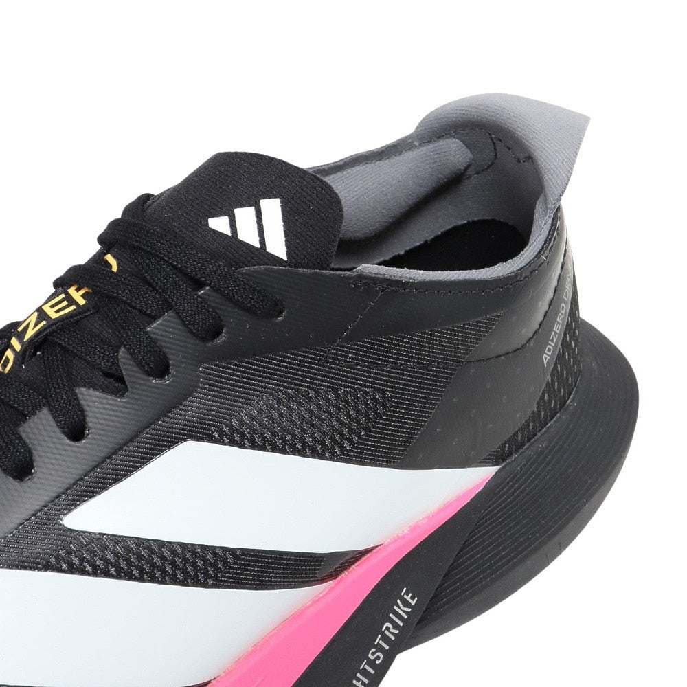 ●もっと走りたい人のために、adidas Runningから登場したロード用レーシングシューズ。スピードを重視してゼロから設計されたシューズで、どれだけ速く走れるか挑戦しよう。軽量でバネのような反発力を持つLightstrikeクッショニングにはレーシングロッドが埋め込まれ、ランニング効率を高めて前進をサポートする。オールサーフェスラバーがグリップ力を与えてくれるので、ストレートでスピードを上げるときも、コーナーを曲がるときも自信に満ちていられる。