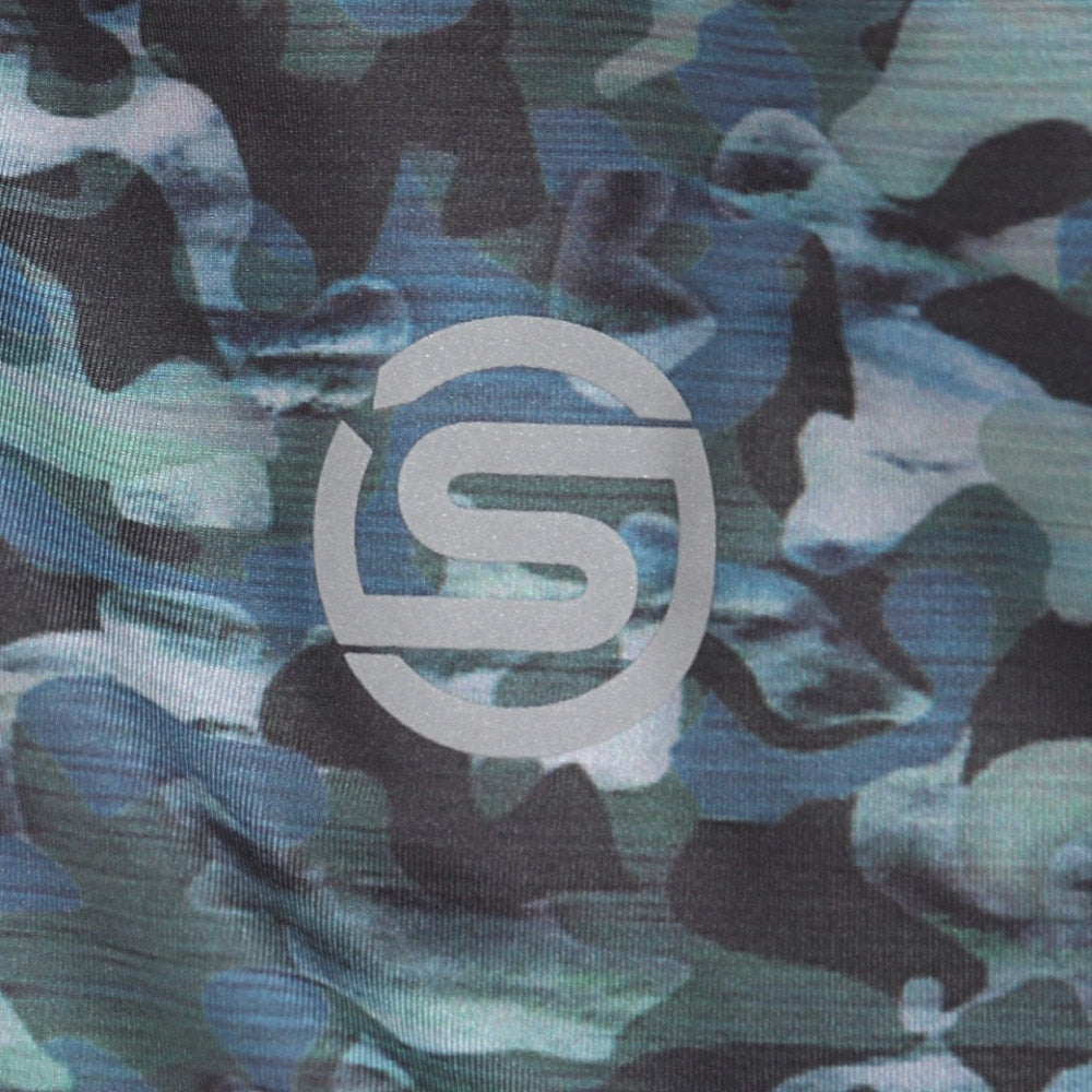 ●ランニングに最適な軽量ポリエステルを使用し、総柄で水彩画を思わせる迷彩柄のランニングTシャツです。胸にはSKINSロゴをシンプルに配しています。胸のロゴ、後身頃の〇Sマークは再帰反射プリントで、夜間の視認性を向上させています。