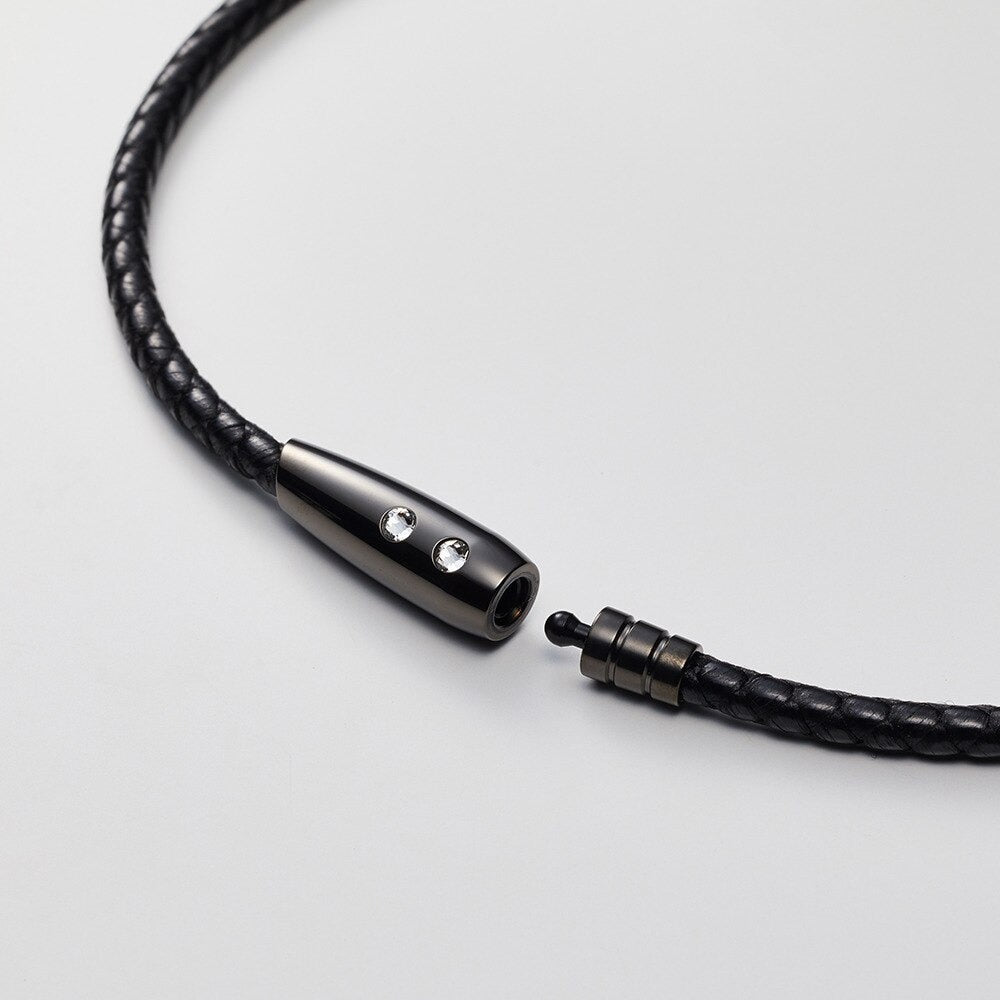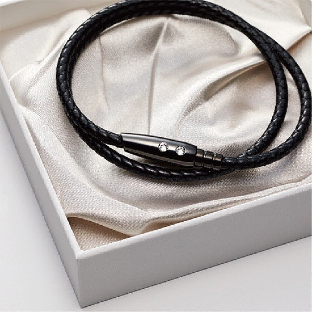 ●素材:【トップ】チタン/クリスタル 【ジョイント】ステンレス 【紐】QUARTZコード+人工皮革