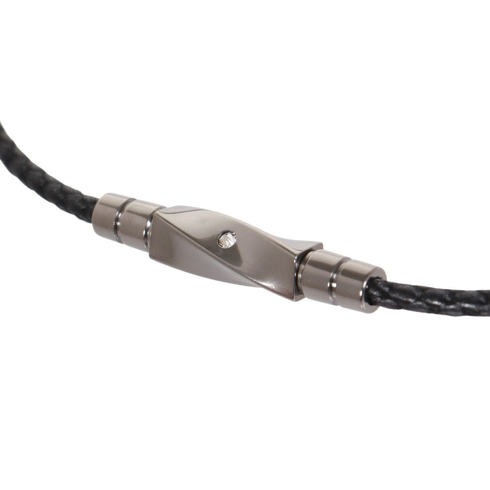 ●素材:【トップ】チタン/クリスタル 【ジョイント】ステンレス 【紐】QUARTZコード+人工皮革
