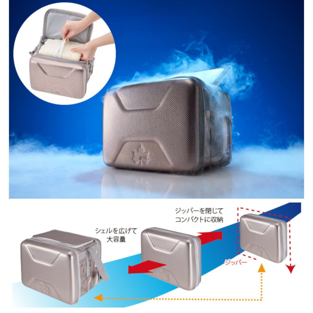 ●強力保冷のハイパークーラー!スポーツやお仕事に最適なコンパクトサイズながら、外部の衝撃から瓶類を守るシェルプロテクト構造を採用。収納は超薄型コンパクト。