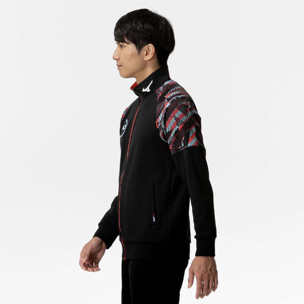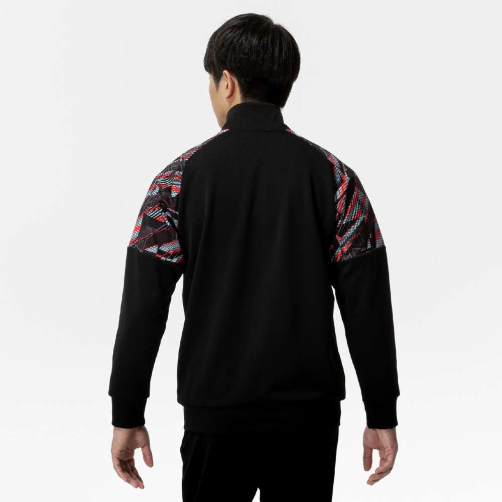 ●頑張るブカツ生を応援する思いを込めた、両肩のグラフィックが目を引く吸汗速乾素材を使用したウォームアップジャケット