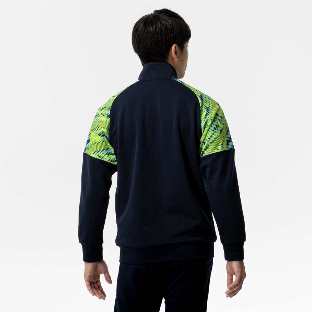 ●頑張るブカツ生を応援する思いを込めた、両肩のグラフィックが目を引く吸汗速乾素材を使用したウォームアップジャケット