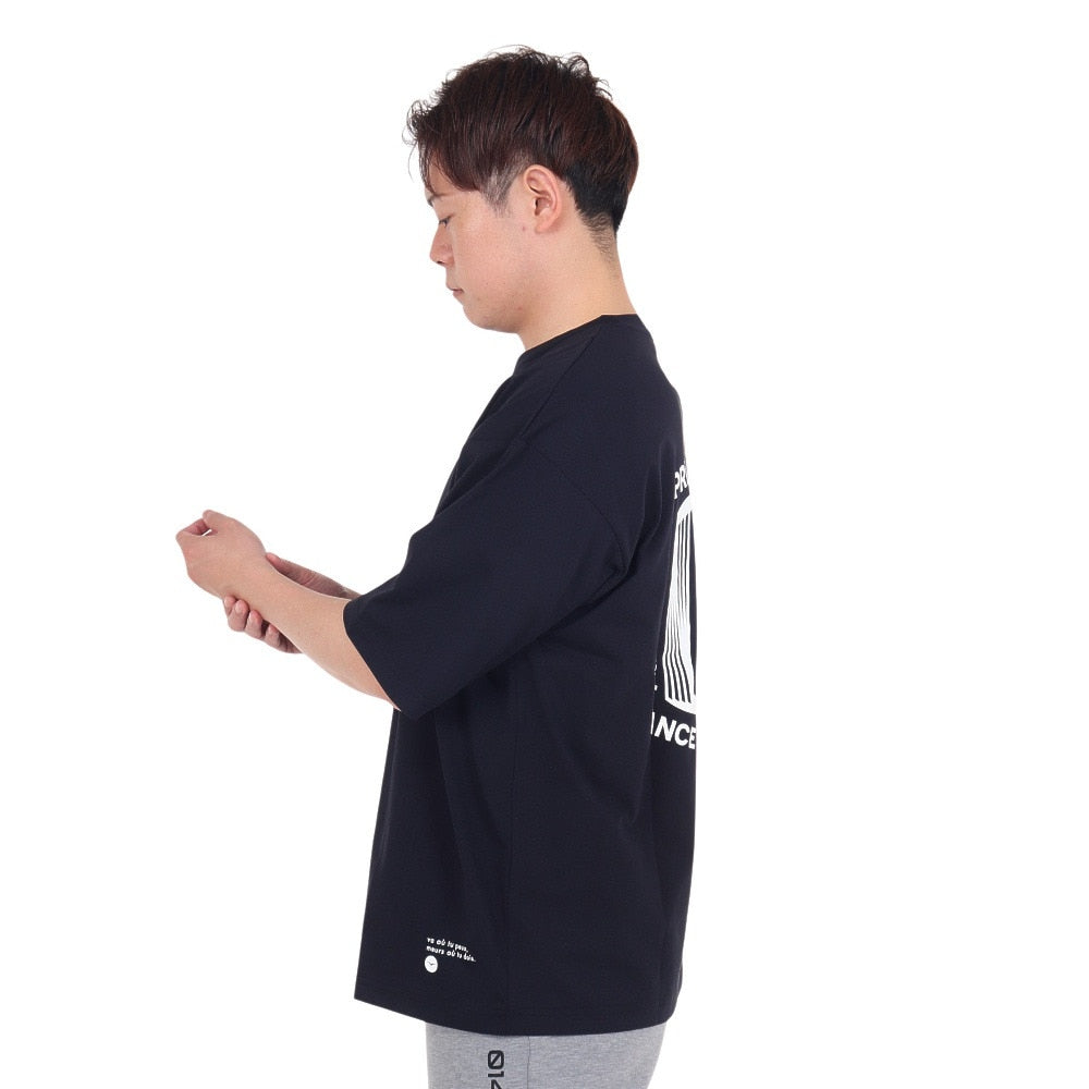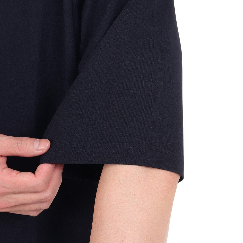 ●吸水速乾機能がありマットなポリエステルを使用。消臭糸を部分的に使用。前後身頃ロゴプリント、ルーズシルエット半袖Tシャツ。
