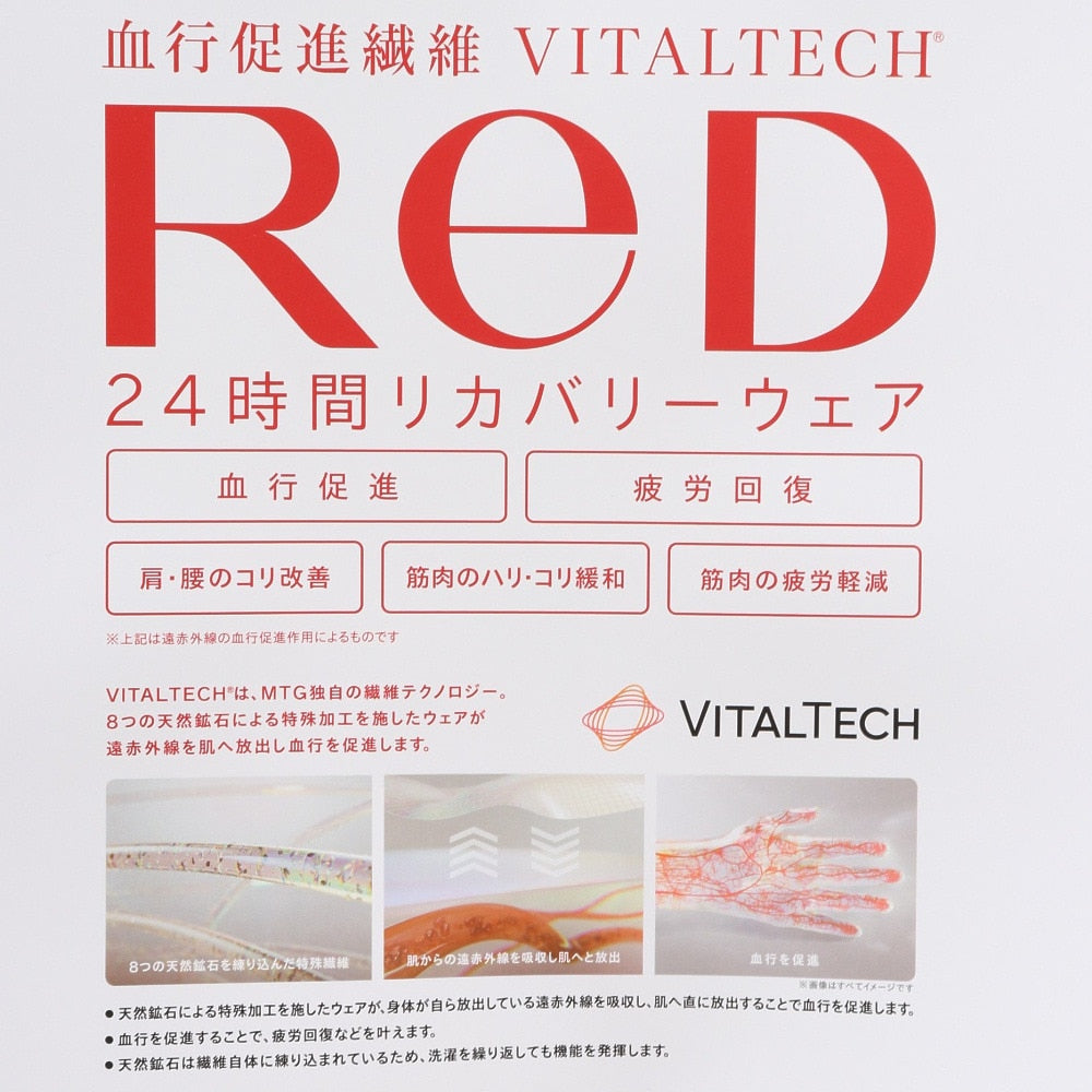●VITALTECHはMTG独自の繊維テクノロジー。8つの天然鉱石による特殊加工を施したウェアが遠赤外線を肌へ放出し血行を促進します。