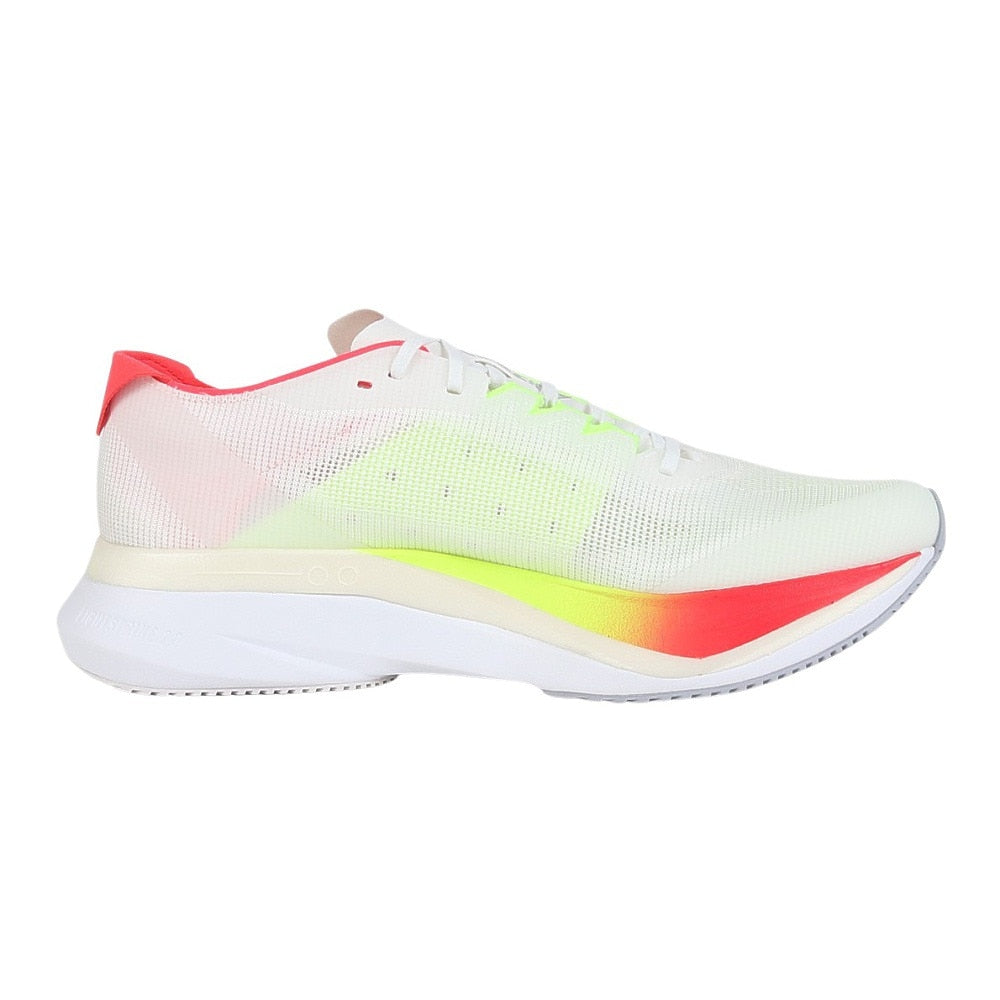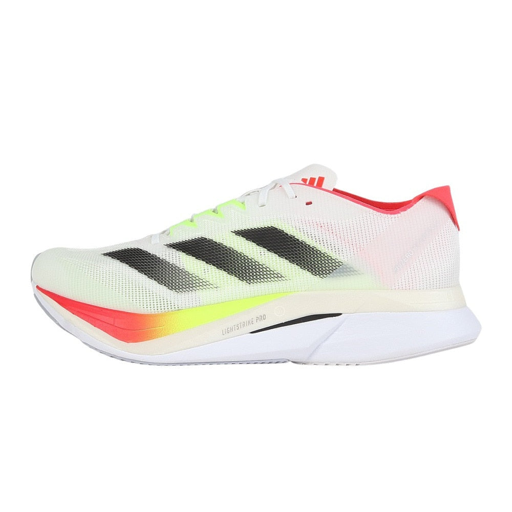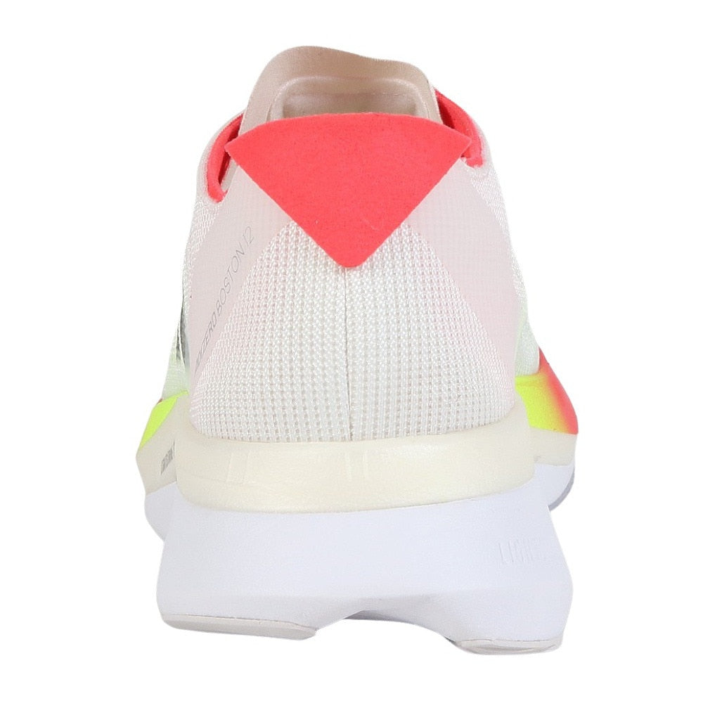 ●厚底・高反発長距離レース&トレーニング対応高機能ランニングシューズ。自己ベストを目指すマラソンやロング走に。ボストンマラソンは、数多あるレースの一つ。でもそれはランナーにとってはこのためにトレーニングプランを組むほど大きな目標であり、大会当日を迎えるまで頭から離れない大事なイベント。アディゼロ ボストン 12は、中距離から長距離のランニングに対応するよう設計されたシューズ。グラスファイバーを用いたENERGYRODS 2.0が生み出す推進力は、レース当日のような走りの感覚をトレーニングにもたらし、足裏のエネルギーロスを軽減する。スピードはもちろん、耐久性にも妥協は一切なし。ミッドソールは驚くほど軽いLIGHTSTRIKE PROクッショニングと、新バージョンの耐久性に優れたLIGHTSTRIKE 2.0 EVAを組み合わせている。