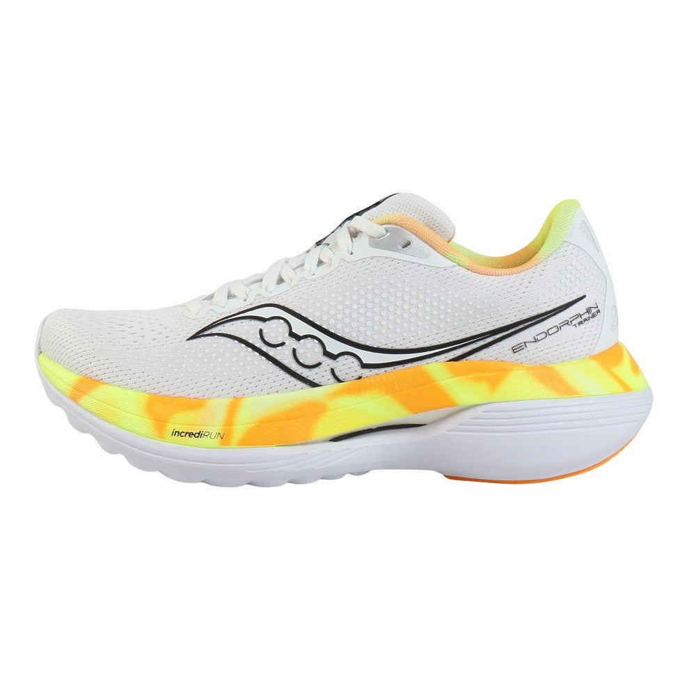 ●Endorphinシリーズに、毎日の練習に最適なトレーニングモデルが登場。Endorphin Trainerは、レース用の先進テクノロジーを日常の走りに落とし込んだ1足です。反発性に優れたIncrediRUNフォームと、耐久性のあるPWRRUN素材の2層構造により、クッション性とエネルギー効率を両立。さらに、3/4長のカーボンプレートとSPEEDROLLテクノロジーが連動し、なめらかな体重移動と推進力のある走りをサポートします。スピードと安定性を求めるランナーのトレーニングを、より快適に、より効率的に。
