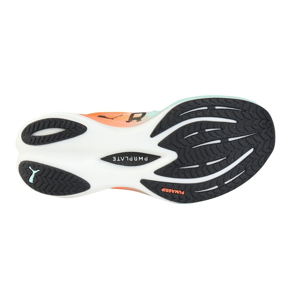 ●革新的なNITROFOAMが最大限のエネルギーリターンを提供し、フルレングスのカーボンファイバー製PWRPLATEが、力強い推進力と効率的な走りをサポートします。アウトソールには、あらゆる路面で優れたグリップ力を発揮するPUMAGRIPを採用。さらに、アッパーには20%以上のリサイクル素材を使用し、環境にも配慮しています。大きめに配置されたPUMA x HYROXブランディングが、パフォーマンスだけでなくスタイル面でも存在感を放ち、スポーツシーンをよりスタイリッシュに演出します。