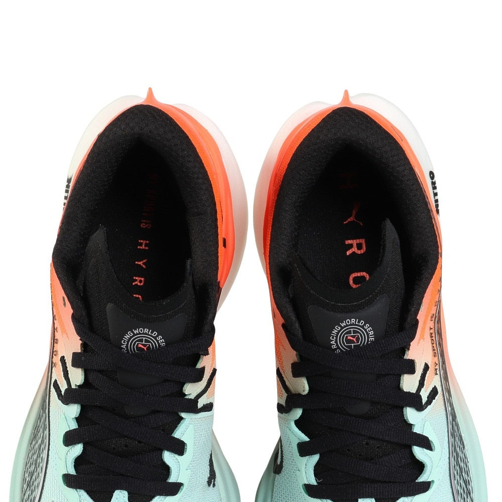 ●PUMA x HYROXコレクションより登場する「ディヴィエイトニトロ 3 」は、すべてのランナーとHYROXレーサーのために設計されたランニングシューズです。