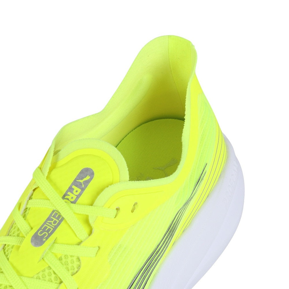 ●大胆にプーマキャットロゴが施されたモノメッシュアッパーは、通気性と軽さを提供します。ミッドソールにはクッション性と高い反発性を発揮するPROFOAMを採用。日々のトレーニングやランニングにぴったりのアイテムです。