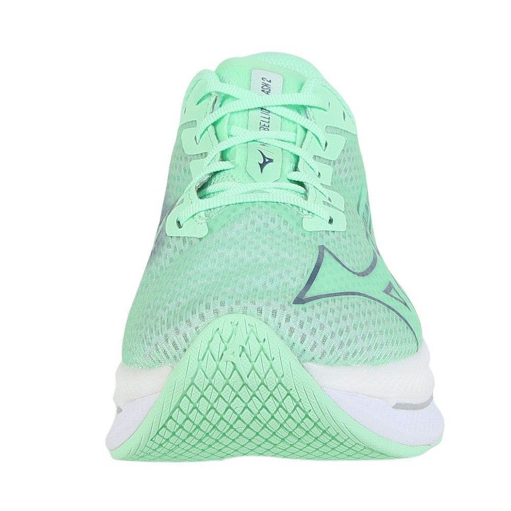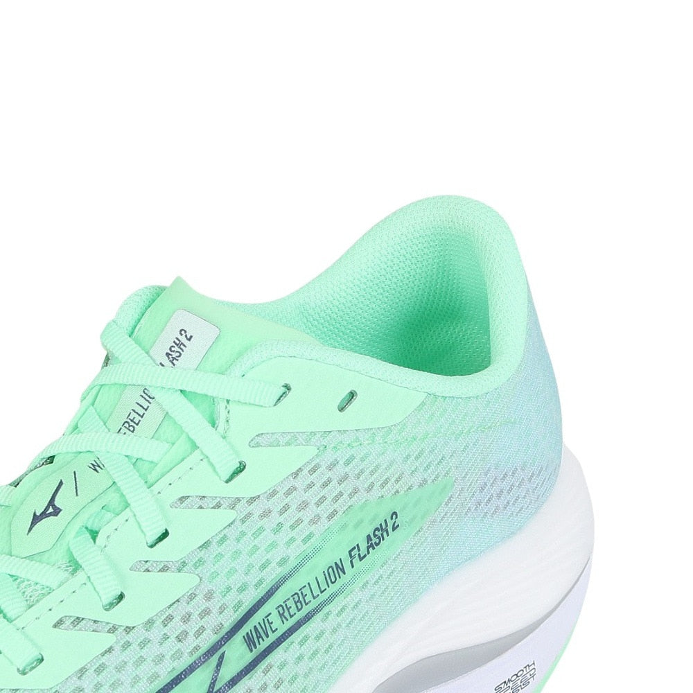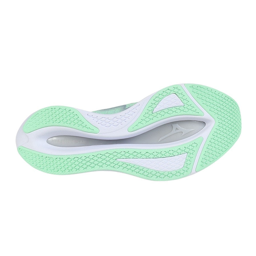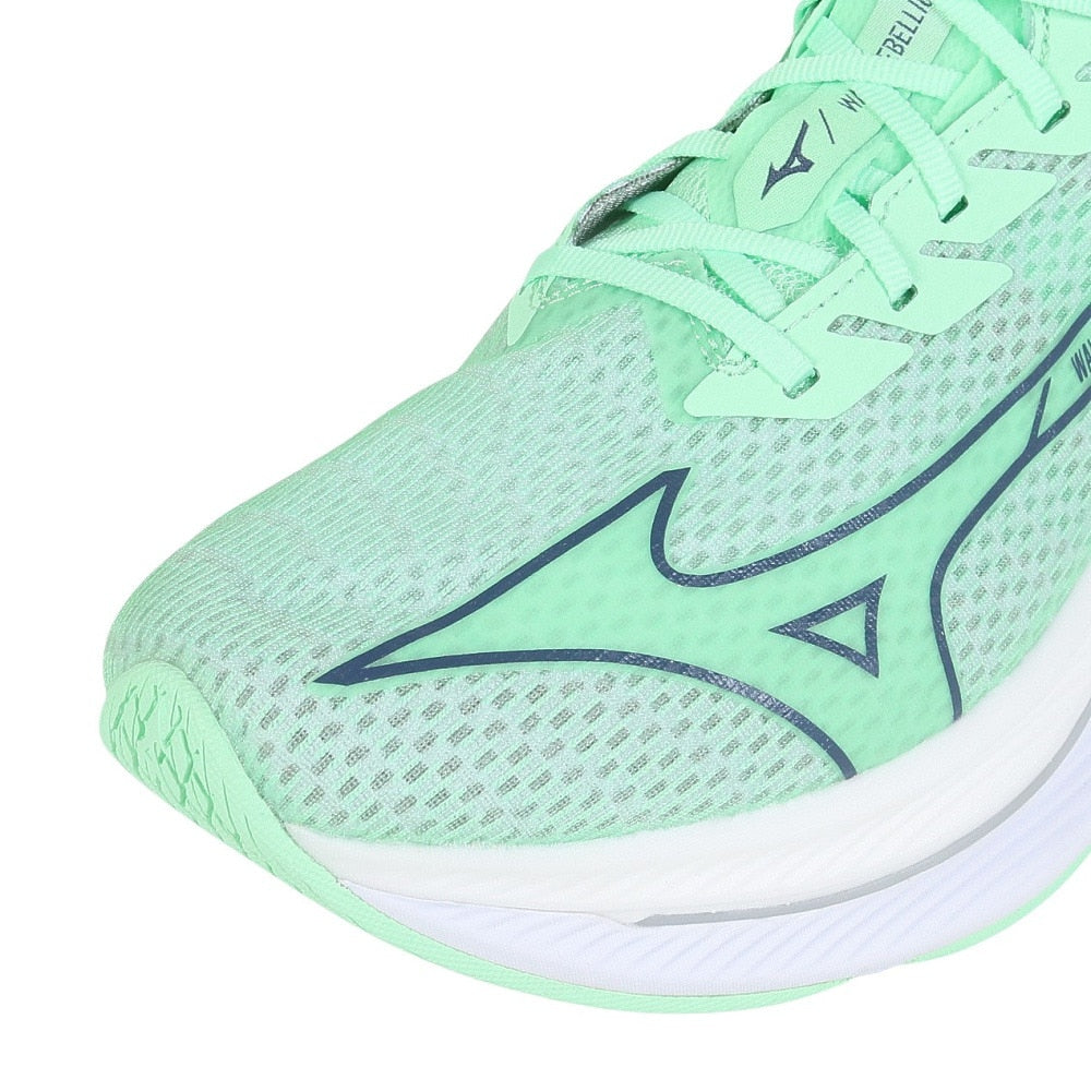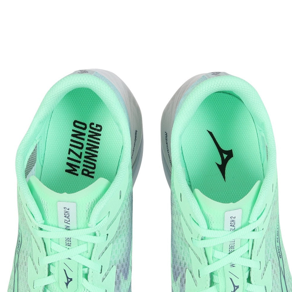 ●ボトムミッドソールにはMIZUNO ENERZYフォームを採用し、ウエーブリベリオンプロ2と比較してよりやさしい履き心地に。アウトソールもラバーアウトソール仕様でクセがなく、やわらかい接地感覚。レーシングラストを採用したアッパーにはインナーストラップも配置し、高速走行中の足ぶれを抑える。