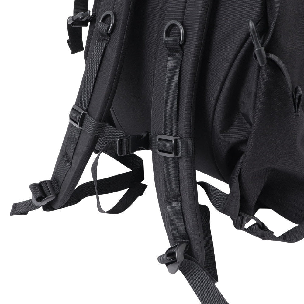 ●メイン素材に軽量性と耐久性に優れるRobicナイロンを採用し、ボトムには耐摩擦性が高い1000デニールのナイロン素材を配置。体のラインに合わせて設計した厚みのあるショルダーハーネスは、クッション性とフィット感が高くて快適な背負い心地です。荷物の量に合わせて、サイドコンプレッションで容量の調整が可能です。メインコンパートメント内にスリーブポケットを備え、フロントには傘やボトルの収納に便利なファスナー付き縦型ポケットを配置。フロントのセンターのデイジーチェーンには、カラビナなどで小物を連結できます。