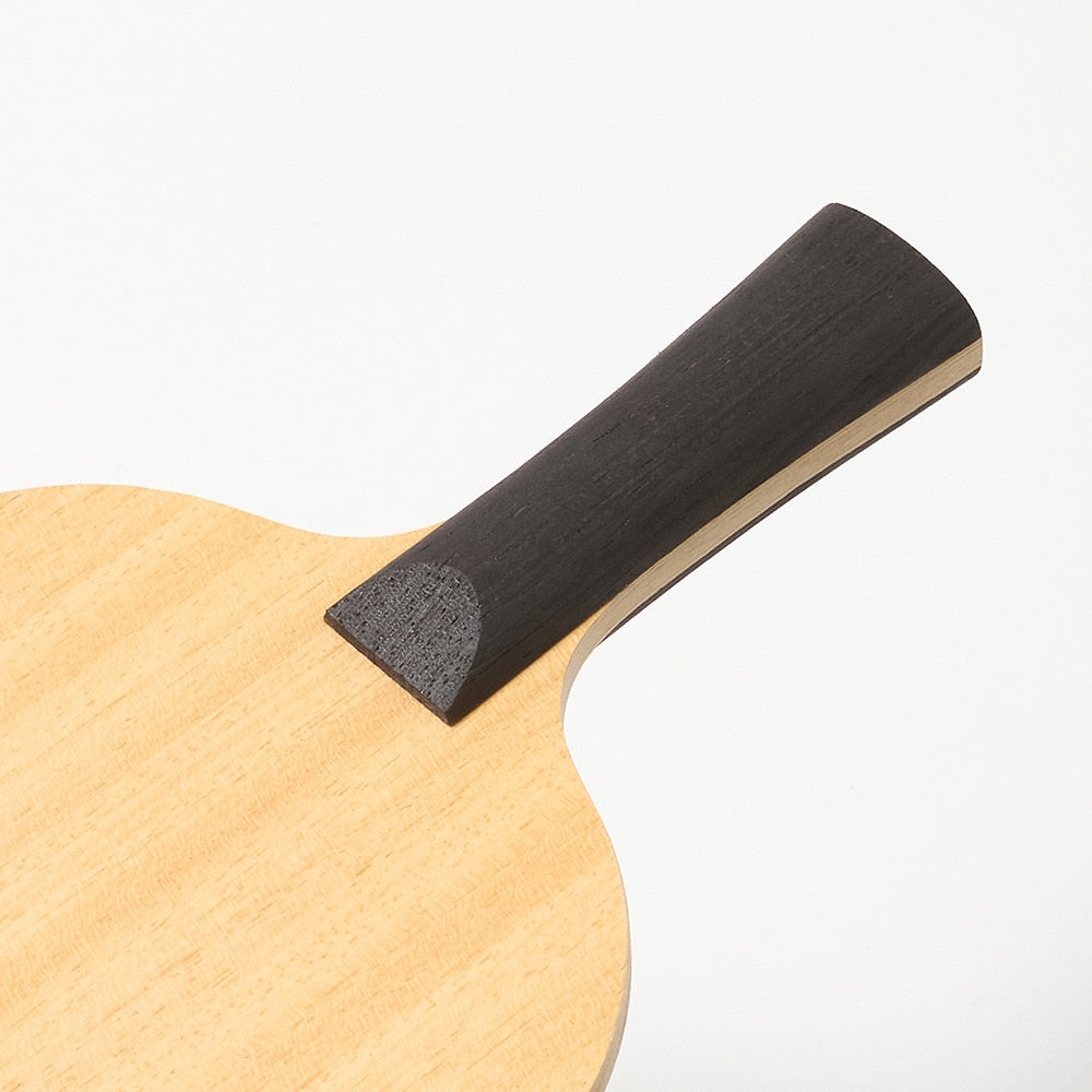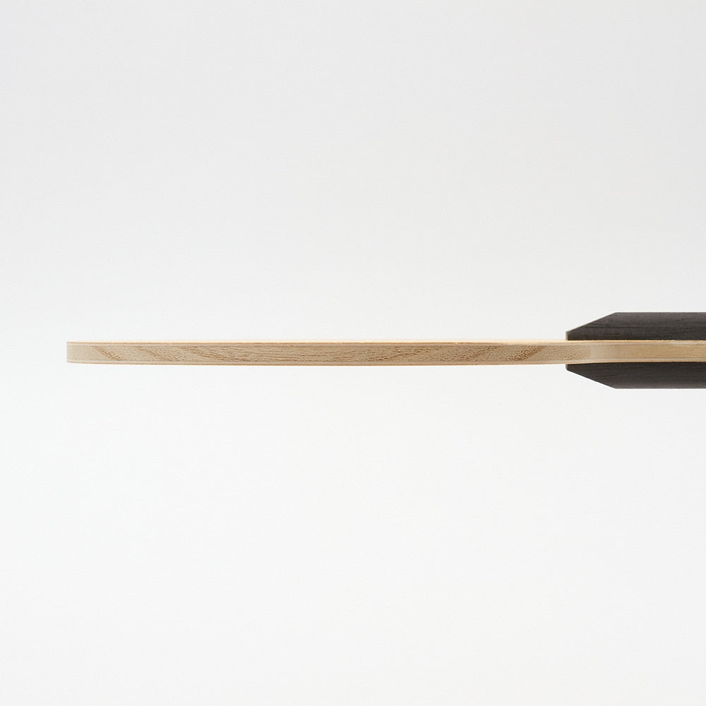 ●ラリーを繋ぐ程よい弾みの木材5枚合板を使用し、「入れるだけ」から「狙って打てる」技術習得までをサポート。弾みと響きの良さを追求し、薄めのグリップでボールを掴む、弾く感覚を養います。特に、これから戦型を固めたい中学生や、練習環境の限られた選手にとって最適な一本です。