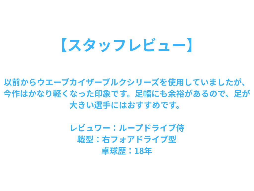 以前からウエーブカイザーブルクシリーズを使用していましたが、今作はかなり軽くなった印象です。足幅にも余裕があるので、足が大きい選手にはおすすめです。