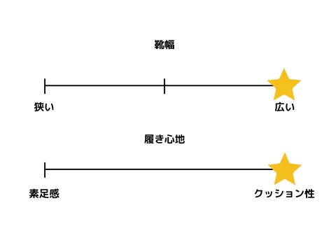 ① 3Eと呼ばれる横幅が広めな作りなっており、足幅が大きい方にぴったり